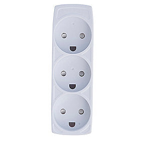 E-Line 3-Stikdåse 2x0.75 mm2 H03VVH2-F, Uden Jord, 1,5M ledning, Hvid