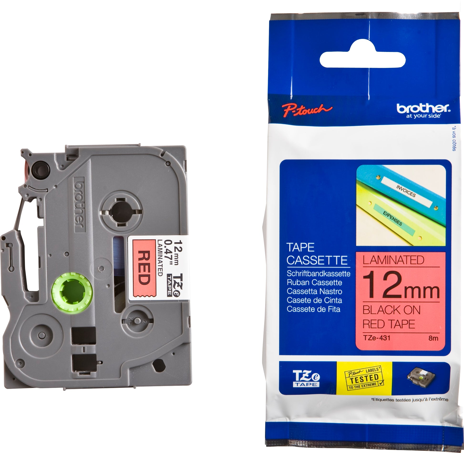 Effektiv og holdbar mærkning med 12 MM SORT TEKST PÅ RØD TAPE