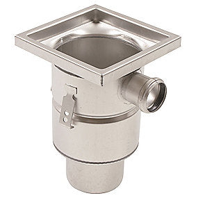 Blücher Industrigulvafløb lodret Ø110 mm udløb og 1 sideindløb. Til beton & fliser. Syrefast stål