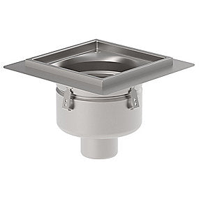 Blücher industri afløbsskål Ø110mm, 300x300mm ramme, lav. Til beton & fliser. 300x300mm. Lodret