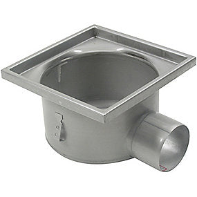 Blücher industri afløbskål, lav med vandret Ø110 mm udløb. 300x300mm ramme. Til epoxy. Syrefast stål