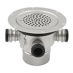 Blücher Circle gulvafløb med sideindløb og lodret Ø110 mm udløb. Til vinyl. Syrefast stål