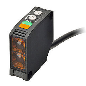Photoelectric sensor, square body, red LED, retro-reflective, non-polarized, 7m, AC/DC, relay, L-ON/D-ON selectable, 2m cable