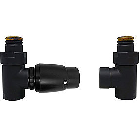 Cylinder RTL, ½'' ligeløbende ventilsæt med returtermostat, lakeret matsort (RAL9005).Tilslutningsgevind nedad: Indv. ½''.Det er valgfrit om man vil have fremløb i højre eller venstre side. Regulering skal sidde på returløbet.