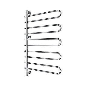 Varzo er en meget praktisk og fleksibel håndklædetørre i poleret rustfrit stål. De blidt afrundede buer skaber et elegant design. Buerne kan med fuld frihed roteret individuelt i 180 grader. Det er således let at hænge håndklæder på, og denne konstruktion tillader at flere håndklæder kan hænge luftigt og tørre samtidigt. Når håndklædetørreren ikke anvendes, kan armene foldes ind langs væggen, hvis det ønskes. Varzo fås i fire højder og to bredder, så du kan nemt finde den rigtige model til netop dit behov.Denne elektriske model er opvarmet af et varmekabel inde håndklædetørreren. Kontakten er placeret på enden af ??det lodrette rør og den indbygget energibesparende termostat gør den meget anvendelig.Mulighed for tilslutning med skjult ledning gennem beslaget eller med stik til en stikkontakt.