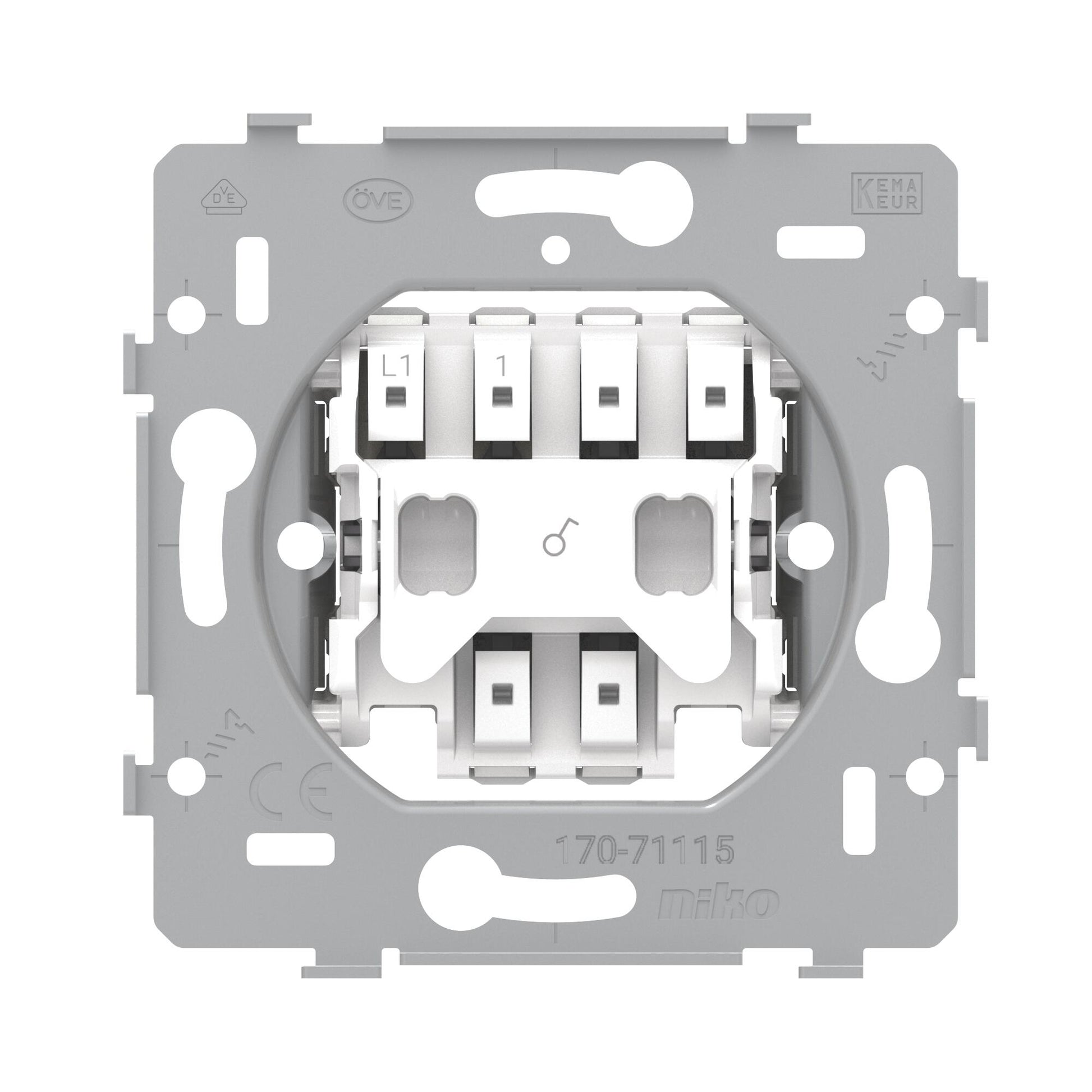 1-polet afbryder 10A/250Vac. Monteres nemt i en eurodåse med skruer.