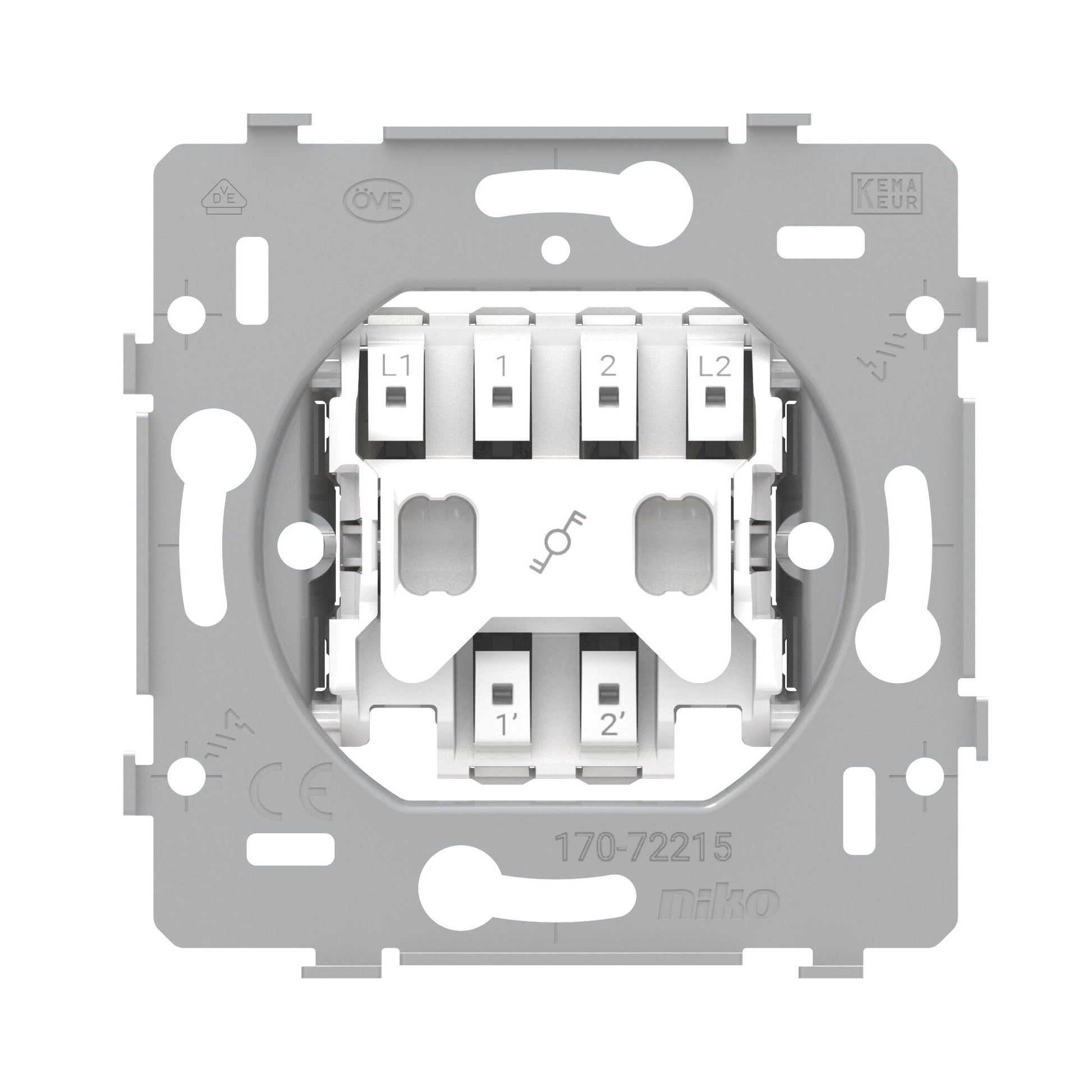 2-polet korrespondanceafbryder med 2 seperate kontaktsæt, som betjenes på samme tangent.