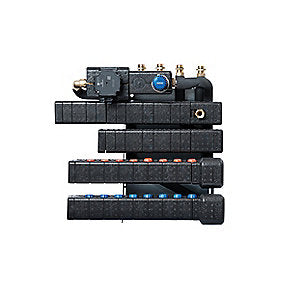 Wavin Calefa isoleret bundmodul BG med Shunt, venstrevendt U3 med 9 koldtvand, 6 varmtvand og 8 gulvvarmekredse - 50mm/Bv.