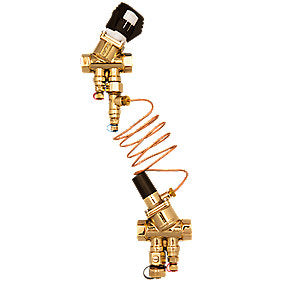 - Muffe/muffe med 2 aftapventiler, målenippel, unioner, afspærring og kapillarrør.