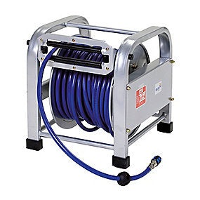 Flowconcept automatisk slangeopruller med faste ben og kraftigt pulverlakeret stålstel.