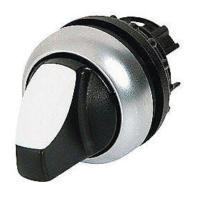 Drejegreb til M22 tryk knap serien, for LED, SORT, 3-stillinger faste position kl 10-12-2. kort knebel, sort med HVID lampeglas, alu farvede bund ring,