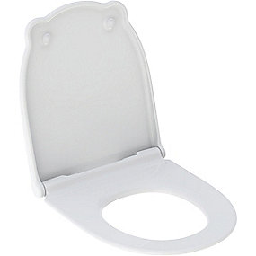 Geberit Bambini toiletsæde til børn: Soft close=Nej, Hvid. Børnevenligt design. Håndtag tilpasset størrelsen på børns hænder for nem og hygiejnisk åbning og lukning. Afrundede kanter til at hindre tilskadekomst. Rengøringsvenlig. Toiletsæde med EasyMount-hængsler. Sandwichform. Til børnetoiletter Rimfree