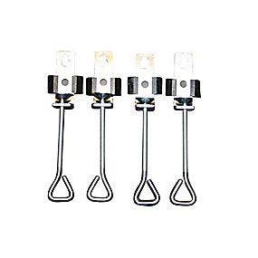 Uni spændebeslag til køkkenvask, sæt à 4 stk, sikrer pålidelig og præcis montering med korrosionsbestandige materialer, velegnet til Til og Juvel vaske, og opfylder professionelle krav til holdbarhed og stabilitet i bolig- og erhvervsinstallationer.