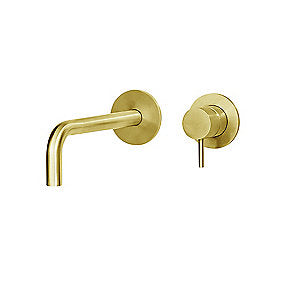 Qtoo d line håndvaskarmatur sampak, til indbygning, 190mm tud, poleret PVD messing