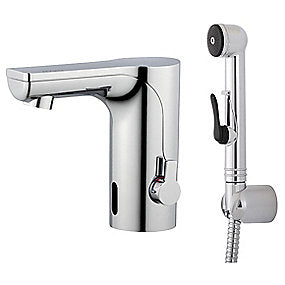 Mora mmix tronic berøringsfrit håndvaskarmatur med selvlukkende håndbruser. Til batteri