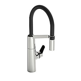 Køkkenarmatur med betjeningsvenligt sidegreb og høj fleksibel svingtud.