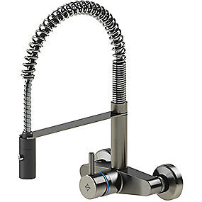 Kriss Semi pro køkkenarmatur forbruser til væg. Børstet rustfrit stål