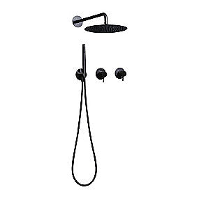 QTOO d line Circle termostat PVD Sampak med omskifter for indbygning, Ø300 hovedbruser. Børstet charcoal