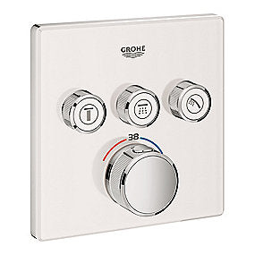 GROHE SmartControl termostatarmatur til indbygning med tre ventiler. Hvidt glas 3SC