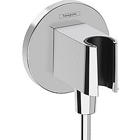 . består af: vægtilslutning, roset . version: hus af plast med indvendig vandforsyning af plast . fast holdeposition. til alle Hansgrohe brusere, dog ikke AXOR Starck håndbrusere. til slanger med konisk omløber. materiale: kunststof . med kontraventil. tilslutningstype: ½''