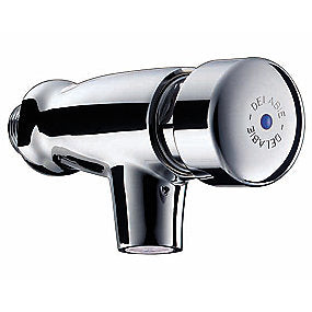 - Tempo Stop Delabie tappeventil 1/2'' udvendigt rørgevind i messing med blankforkromet overflade.
