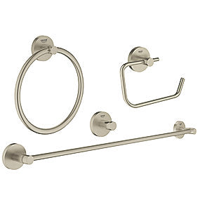GROHE Essentials tilbehørssæt 4 i 1, håndklædestang & -ring, krog, papirholder, Børstet nikkel
