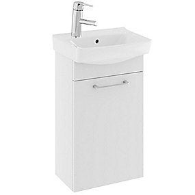 Komplet møbelpakke til det mindre badeværelse. I møbelpakken indgår håndvask og fabriksmonteret underskab med en flytbar hylde. Skabskorpus er fremstillet i fugtsikker spånplade og lågerne af fugtsikker MDF. På højre side findes en krog til f.eks håndklæde.