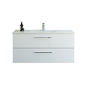 Dansani Mido+ 121 cm møbelpakke med 2 skuffer og Amber vask. Hvid højglans