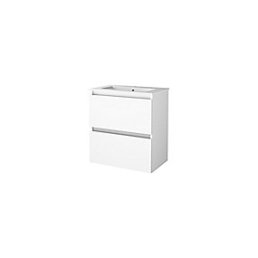 Sanibell Basicline møbelsæt med håndvask. 60x39cm kompakt, grebsfri. Hvid højglans