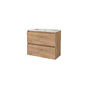 Sanibell Basicline møbelsæt med håndvask. 80x39cm kompakt, grebsfri. Whiskey eg