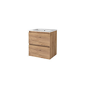 Sanibell Basicline møbelsæt med håndvask. 60x46cm, grebsfri. Whiskey eg