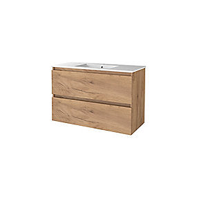 Sanibell Basicline møbelsæt med håndvask. 100x46cm, grebsfri. Whiskey eg