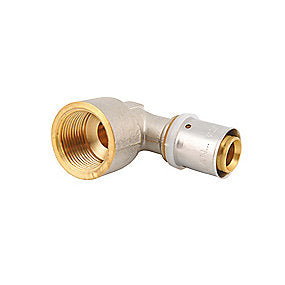 Alu press vinkel 1/2'' x 16 x 2,0 mm med muffe fra VVS Hjørnet sikrer holdbare, tætte samlinger til alu pex rør. Fremstillet i DZR messing med O-rings tætning, godkendt til 95ºC og 10 bar, egnet til professionelle VVS-installationer.