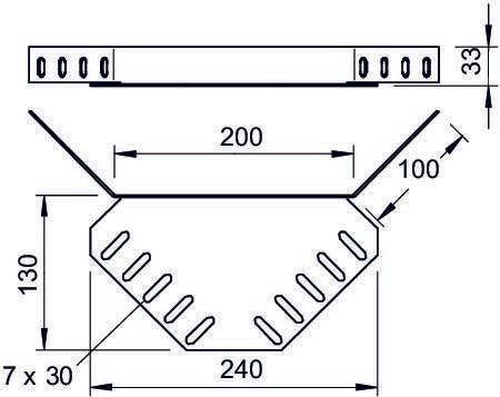 Afgrening Universal passer til kabelbakker på 60mm. Bruges til at lave t-kryds og kryds. Kan bruges hvor den ene bakke har andet tværmål end de andre.