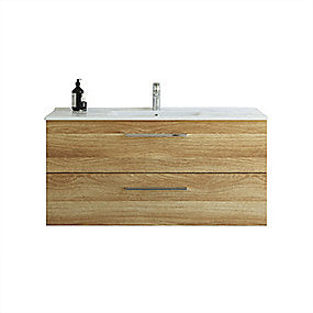 Dansani Mido+ 121 cm møbelpakke med 2 skuffer og Amber vask. Varm eg