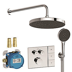 CERATHERM NAVIGO SOLOS | Indbygningssæt brus i krom | 330mm hovedbruser med 3 funktioner | 130mm håndbruser med 3 funktioner | inkl. indbygningsboks