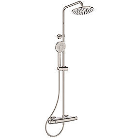 Ideal Standard Idealrain T50 Brusesystem+Brusetermostat, krom, justerbar vægbeslag, 3 strålefunktioner, antikalkdyser, vandbegrænser 8 l/min, 1750 mm Idealflexslange, Ø200 mm hovedbruser, 12 l/min, Ceratherm T50 brusetermostat m/vingegreb i metal