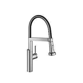 KWC BISTRO E Highflex køkkenarmatur i rusfri stål kombinerer holdbarhed, fleksibilitet og præcis étgrebsstyring. Det leverer pålidelig ydelse, enkel installation og passer til professionelle og private køkkener med fokus på kvalitet og funktionalitet.